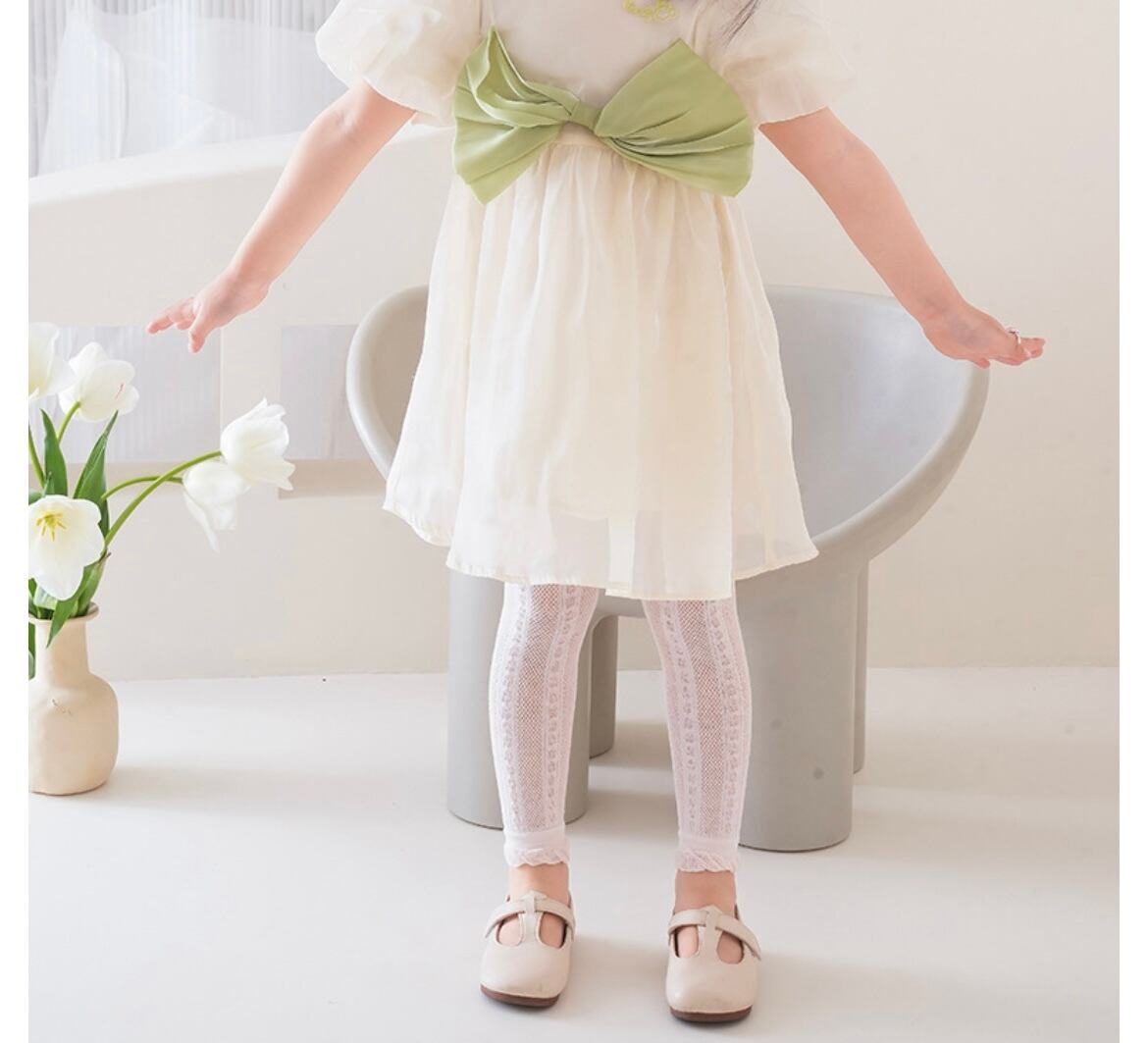 サマーメッシュレギンス キッズ 無地 リボン キッズ ガール ガーリー 韓国風供服 S M L XL 65 70 73 80 90100 110 120 130