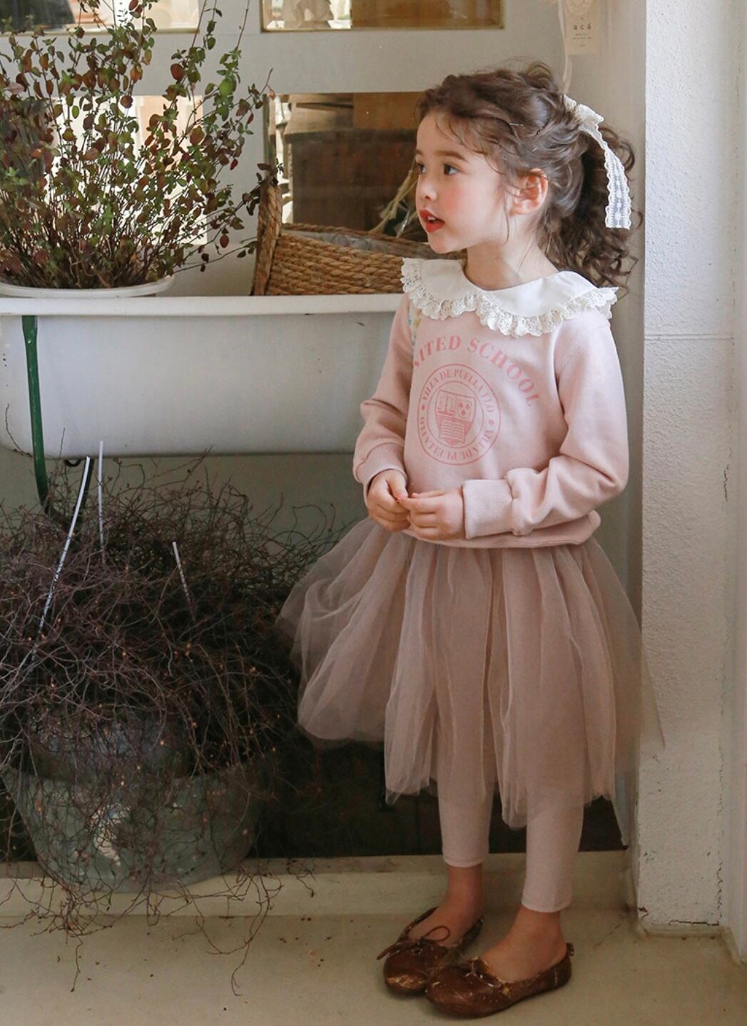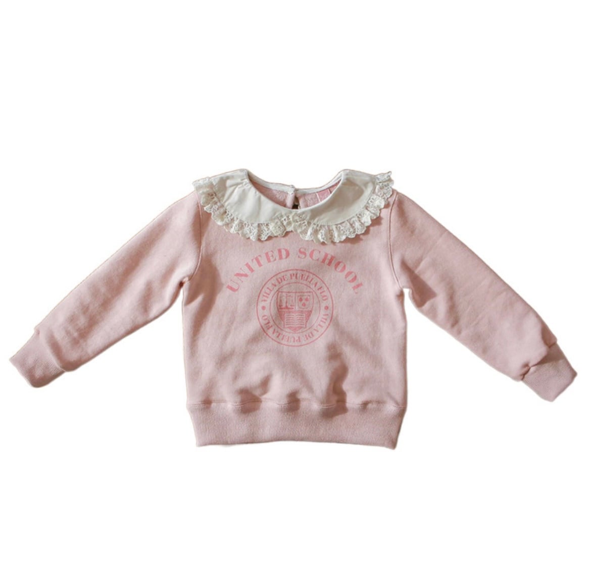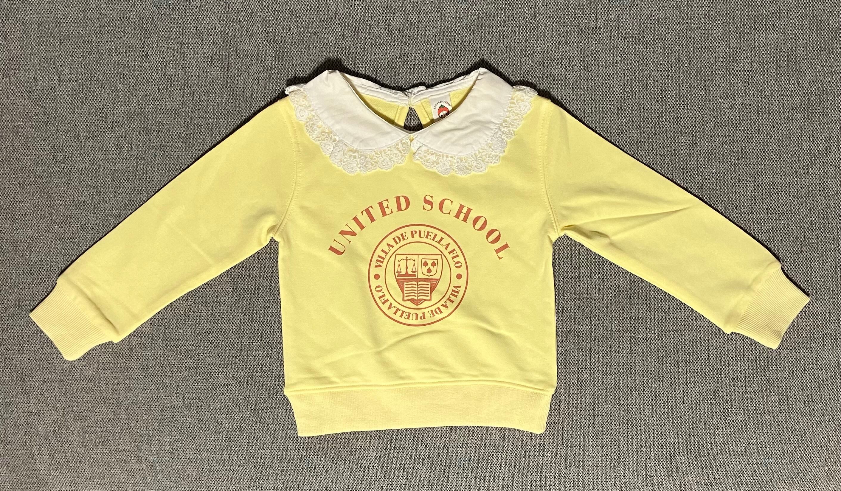 とってもかわいいレース襟がポイントの襟付きトレーナーです!トレーナーといえばカジュアル、ボーイッシュなイメージですが、このトレーナーは女の子らしいキュートな印象を与えます。春・秋・冬の季節に着れる、程よい厚さのトレーナーです^_^長い期間着られる一着ですので、ぜひお子様のワードローブに加えてみてはいかがでしょうか♡