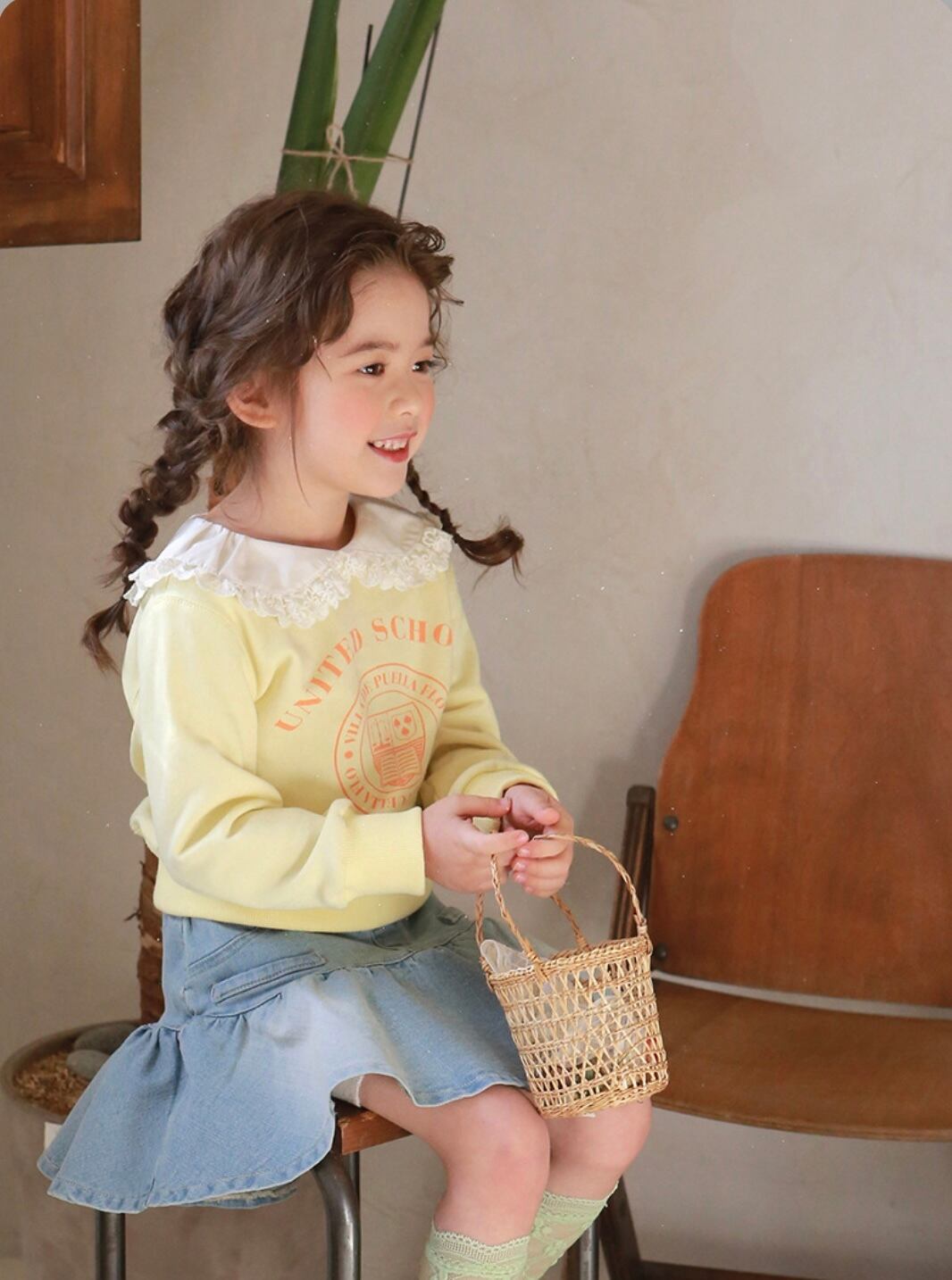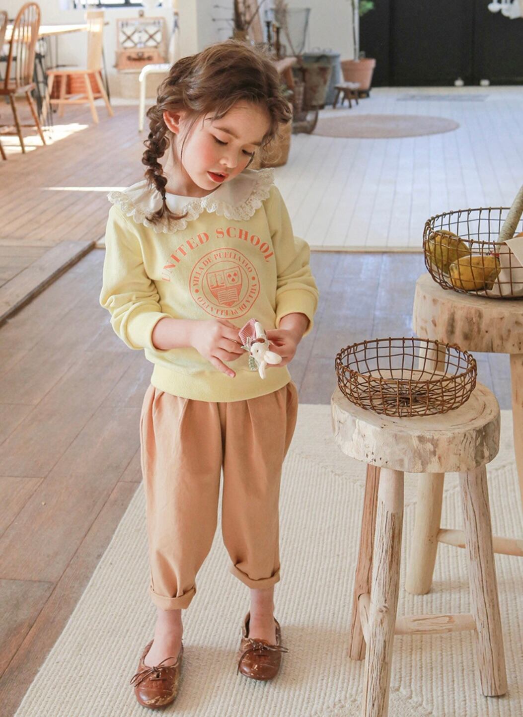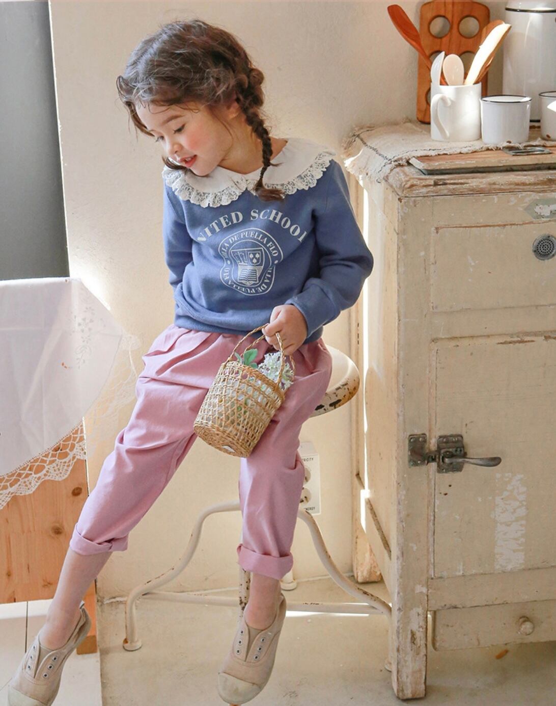 とってもかわいいレース襟がポイントの襟付きトレーナーです!トレーナーといえばカジュアル、ボーイッシュなイメージですが、このトレーナーは女の子らしいキュートな印象を与えます。春・秋・冬の季節に着れる、程よい厚さのトレーナーです^_^長い期間着られる一着ですので、ぜひお子様のワードローブに加えてみてはいかがでしょうか♡